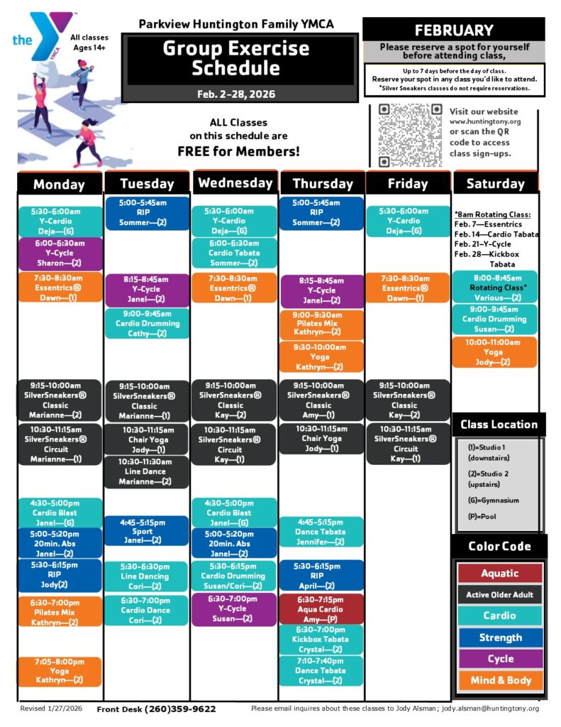 Our group exercise classes are FREE for YMCA members. Please reserve a spot for yourself in class, up to 7 days in advance.
