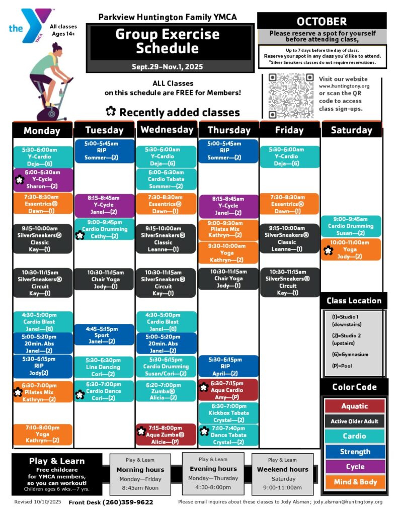 Our group exercise classes are FREE for YMCA members. Please reserve a spot for yourself in class, up to 7 days in advance.
