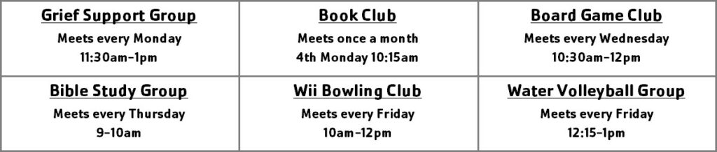 JOIN OUR SOCIAL CLUBS THAT MEET AT THE Y.