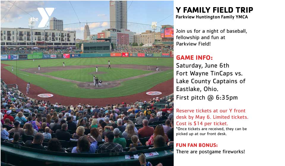 | Saturday, June 6, 6:35pm | Parkview Field, Fort Wayne | TinCaps baseball game | Join us for a night of TinCaps baseball, fellowship & fun at Parkview Field. Tickets are $14. Must be purchased at our front desk by May 6. | Flyer |