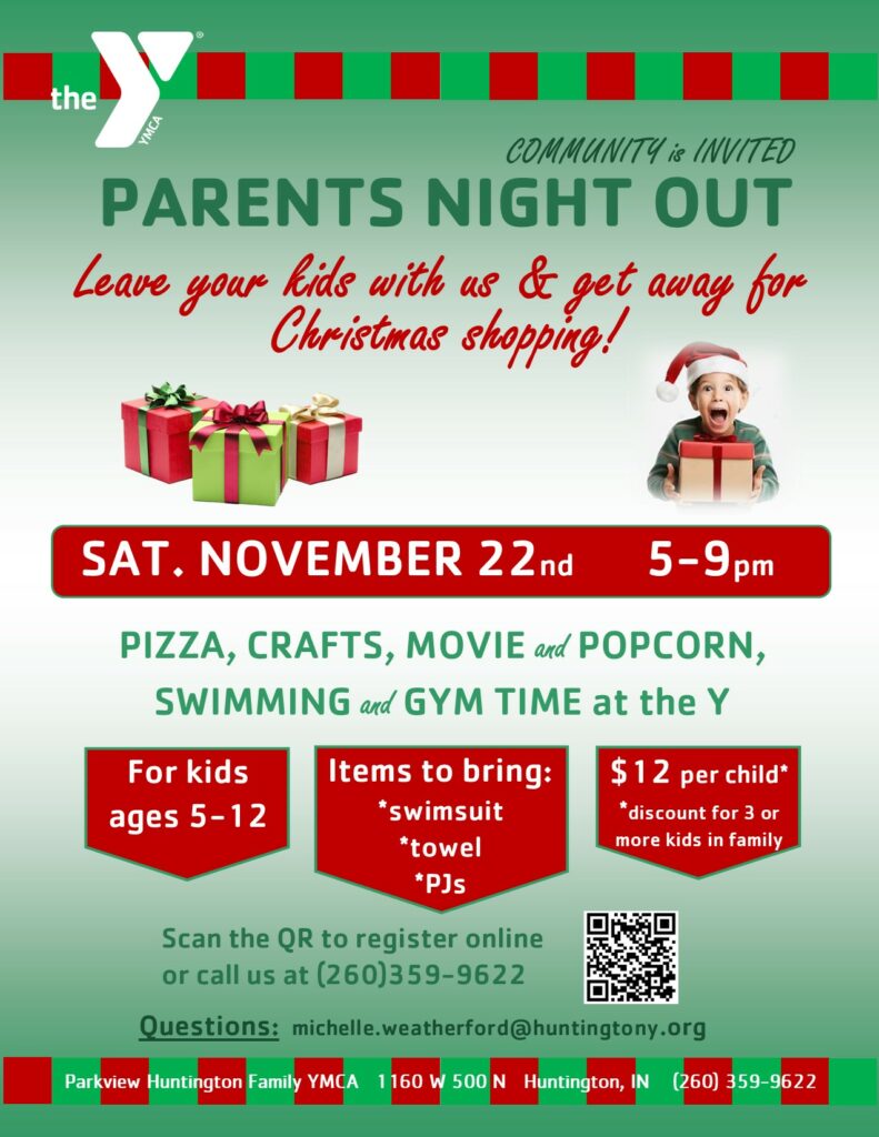 Check out the upcoming Parents Night Out event! Let us care for your kids while the grown-up go out for a night!!