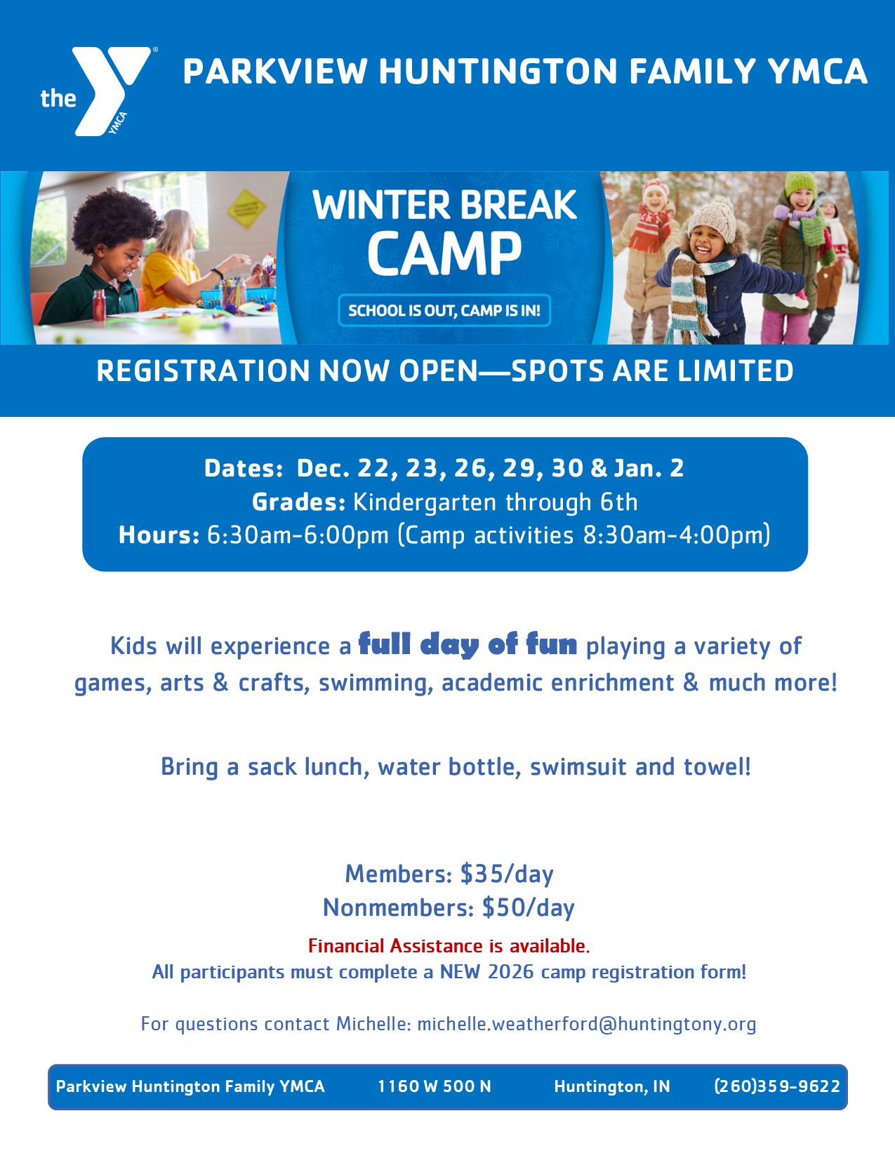 WINTER BREAK CAMP 2025-26 is NOW OPEN for registration. Call 260-359-9622 to enroll and read HERE to see the details of WINTER CAMP 2025-26.