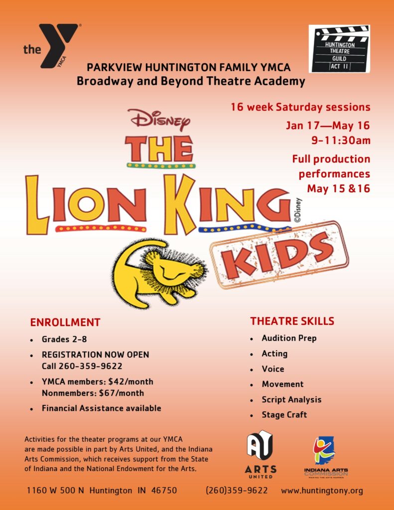 REGISTRATION IS NOW OPEN FOR LION KING, KIDS, our Spring 2026 session which kicks off January 17 and will culminate with performances May 15-16, 2026. Call us (359-9622) to register! Students will meet on Saturday mornings 9am-11:30am for practices!